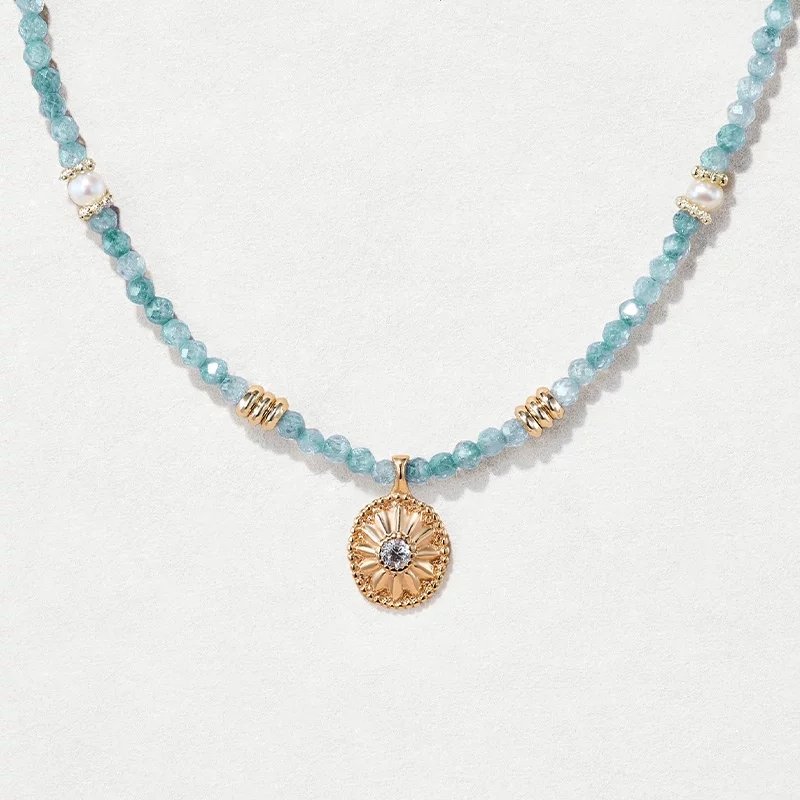 Blue zircon sun-shaped round necklace